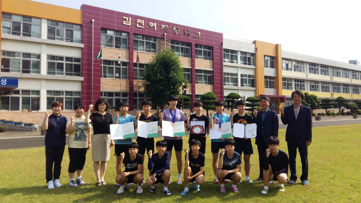 | 김천여자중학교(정우현 교장) 배드민턴부는 지난 6월 3일부터 10일까지 영암실내체육관에서 열린 제60회 전국여름철종별배드민턴선수권대회에서 단체전에서 3위, 혼합복식 금메달(김보령)과 은메달(구보은), 여자복식(김보령, 구보은) 동메달을 획득하는 쾌거를 이루었다.