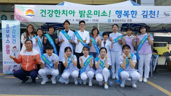 | 김천시(시장 박보생)는 6월 9일(금) 중앙보건지소 전정에서 치아건강의 중요성 인식을 위한 구강보건의 날 홍보 부스를 운영했다.