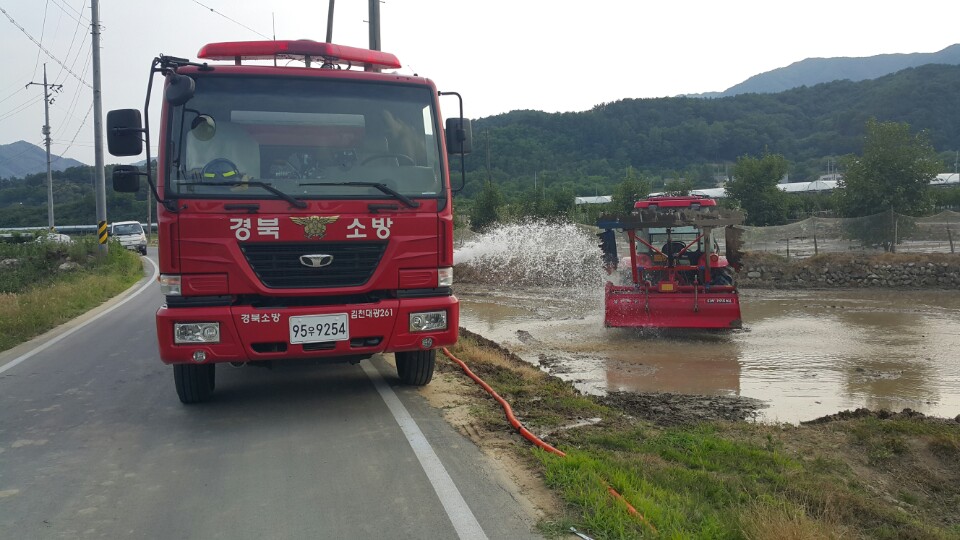 김천시는 김천소방서와 협조하여 소방차8대와 소방인력을 동원하여 12일부터 가뭄이 극복될 때까지 지속적으로 농수를 지원할 예정이라고 밝혔다.