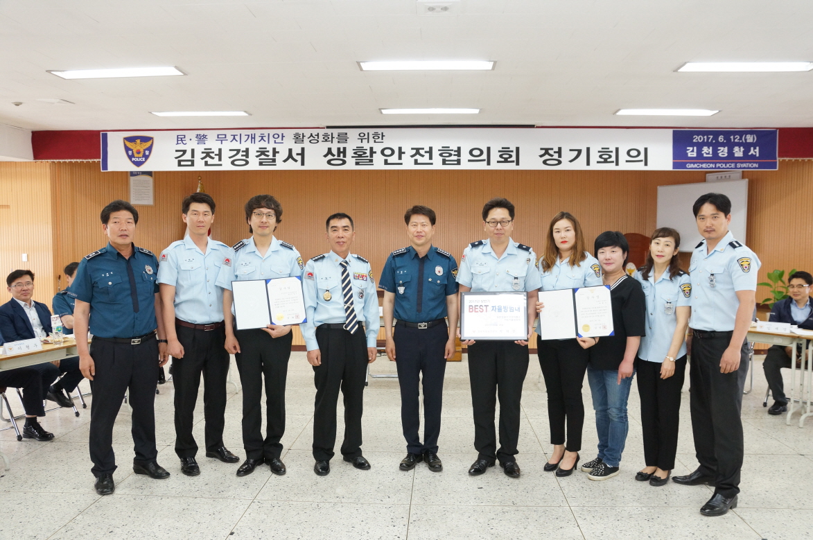 | 김천경찰서(서장 김영수) 아포자율방범대(대장 윤영수)는 경북지방경찰청이 실시 한“17년 상반기 베스트자율방범대 최우수”대로 선정됐다.