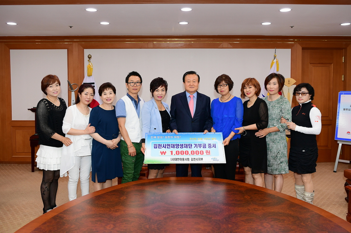 지난 12일 2층 접견실에서 (사)대한미용사회 김천시지부 최기옥 지부장과 임원들은 “김천에서 미용업을 하면서 김천시민들로부터 많은 도움을 받았으며, 감사한 마음을 지역사회에 환원하고자 김천시인재양성재단에 일백만원을 기탁하게 됐다”고 말했다.