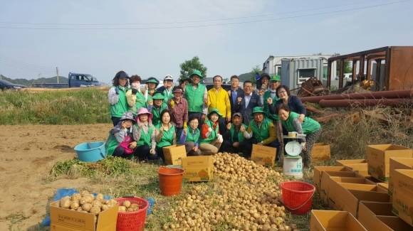 개령면 새마을협의회 휴경지 감자수확 실시