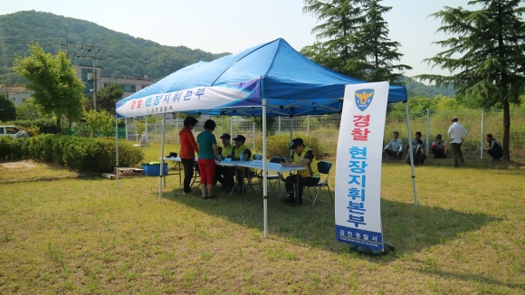 | 김천경찰서(서장 김영수)는, 6월 15일 김천시 응명동 소재 현대모비스 물류센터에서 원인미상의 폭발로 인한 대형 화재 발생 및 다수사상자 발생 상황을 가정, 소방서 등 14개 유관기관과 합동으로 재난 대응 역량 강화를 위한 실제훈련을 실시하였다.