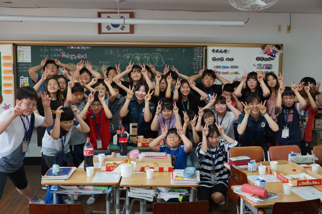 | 김천경찰서(서장 김영수)에서는 지난 16일(금) 어울림 콘테스트 우수작으로 선정된 김천 신일초등학교 6-3반을 방문, 간식으로 피자를 제공하고 격려하는 시간을 가졌다.