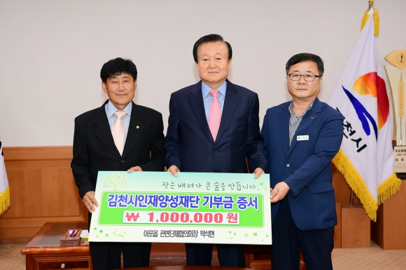 | 김천의 교육발전과 글로벌 인재육성을 위해 김천시 아포읍 박석현 관변단체협의회장이 김천시인재양성재단(이사장 박보생)에 장학기금 일백만원을 기탁했다.