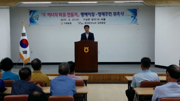 | 6월21일 김천시 구성농협 APC에서 「또 하나의 마을 만들기」 “명예이장 위촉식이 개최되었다.