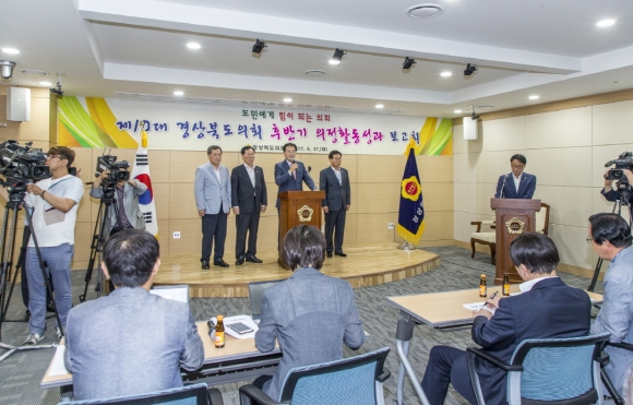 | 경상북도의회(의장 김응규)는 27일 도의회 세미나실에서 10대 도의회 후반기 의정활동 1년 성과를 발표했다.