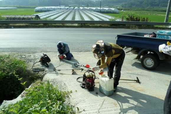 | 지도자들은 예초기를 메고 무더위와 차량으로 인한 위험을 무릅쓰며 예초작업을 실시하였고, 부녀회원들은 안전봉을 들고 차량을 통제하며 안전에도 만전을 기하였다. 일찍부터 작업을 시작하였으나 뜨거운 햇살에 구슬땀을 흐리며 작업하는 회원들을 격려하기 위하여 면장 등 직원들은 시원한 물과 음료 등 간식을 준비하였고, 작업 현장에 함께 나온 김세운, 진기상 의원은 “이른 아침부터 정말 고생이 많다며 이렇게 힘을 모아준 회원들께 격려의 박수를 보내고 싶다며 감사와 격려의 마음을 전했다.