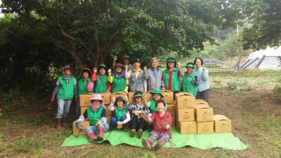 6월 27일 봉산면새마을협의회원 40명은 이른 새벽부터 모여 지난 3월 씨감자를 심어 그동안 정성껏 풀을 메고 물을 주며 경작해온 감자를 수학하여 크기별로 선별하여 포장하였다.
