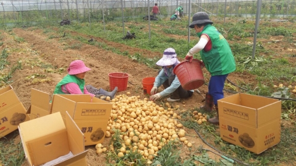나눔을 위한 감자 수확에 구슬땀