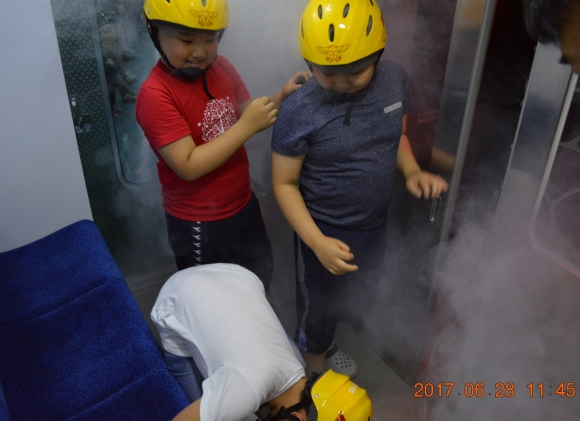 | 교육에 참여한 3학년 추성민 학생은 “미리 사전에 교육도 받고 안전모를 쓰고 체험버스에 올랐지만 땅이 흔들리거나 연기가 가득차서 앞이 잘 보이지 않으니 아무생각도 나지 않고 무서웠다. 하지만 차분하게 설명을 들으며 스스로를 지키는 방법을 연습해보니 다음에 이런 일이 생기더라도 당황하지 않고 차분하게 행동할 수 있다는 자신감이 들었다.”라고 했다.