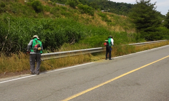 봉산면새마을협의회 연도변 풀베기에 구슬땀