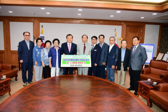 | 김천의 교육발전과 글로벌 인재육성을 위해 자산동 용두경로당(회장 신학수)에서 김천시인재양성재단(이사장 박보생)에 장학기금 일백만원을 기탁했다.