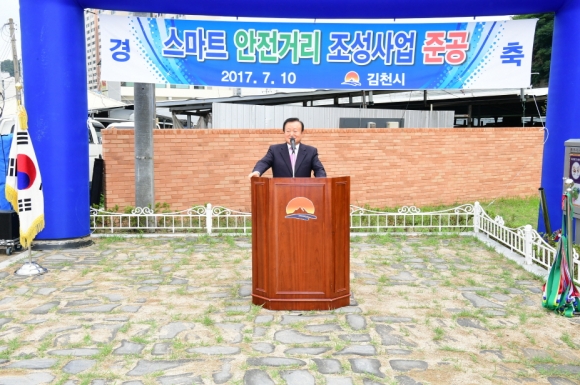 | 김천시(시장 박보생)는 7월 10일 신음동 1045-1번지에 조성한 쉼터에서 지역주민 150여명이 참석한 가운데 스마트 안전거리 조성사업 준공식을 가졌다.
