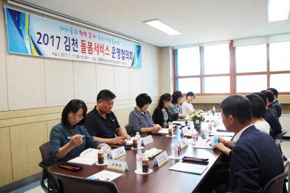 | 김천교육지원청(교육장 장태덕)은 7월 11일(화) 김천교육지원청 2층 소회의실에서 2017 상반기 ‘김천돌봄운영협의회’를 개최하고 관내 돌봄 아동에 대한 종합지원 및 사각지대 해소를 위해 함께 노력할 것을 결의했다.