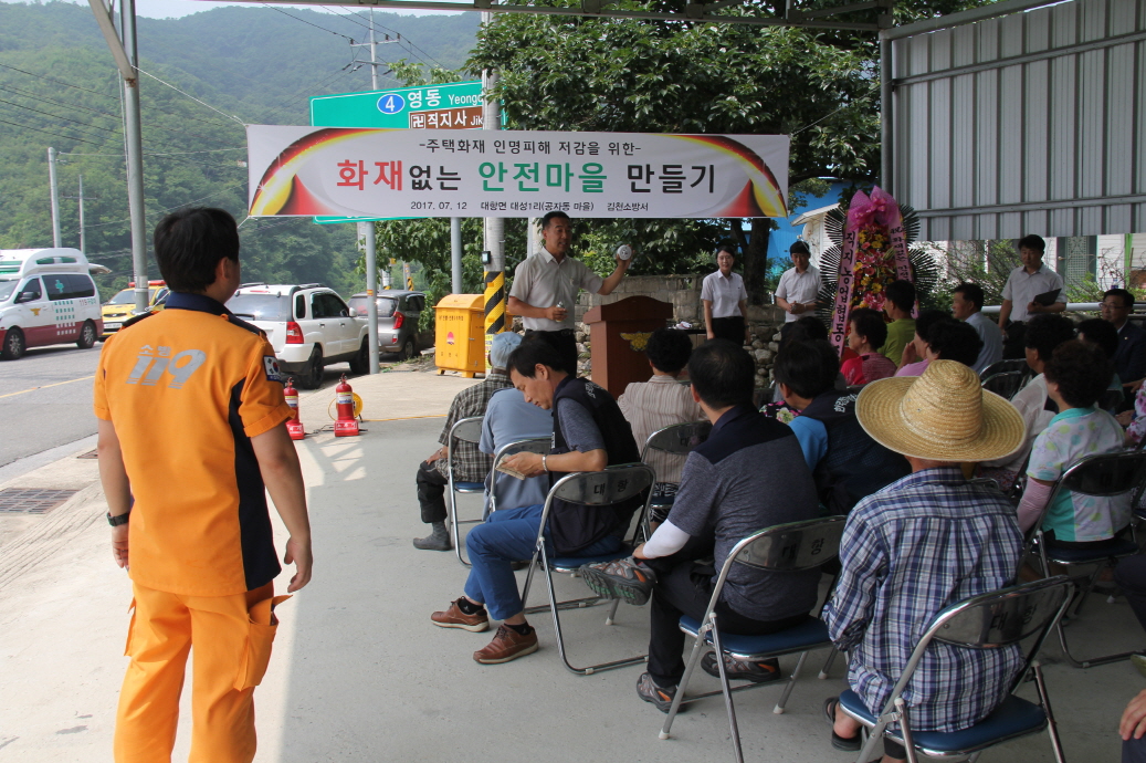 | 행사 진행은 주택용 기초 소방시설 보급, 소화기 및 단독경보형 감지기 설치 및 사용법 교육, 명예소방관 위촉, 화재없는 안전마을 현판식 등으로 실시되었다.