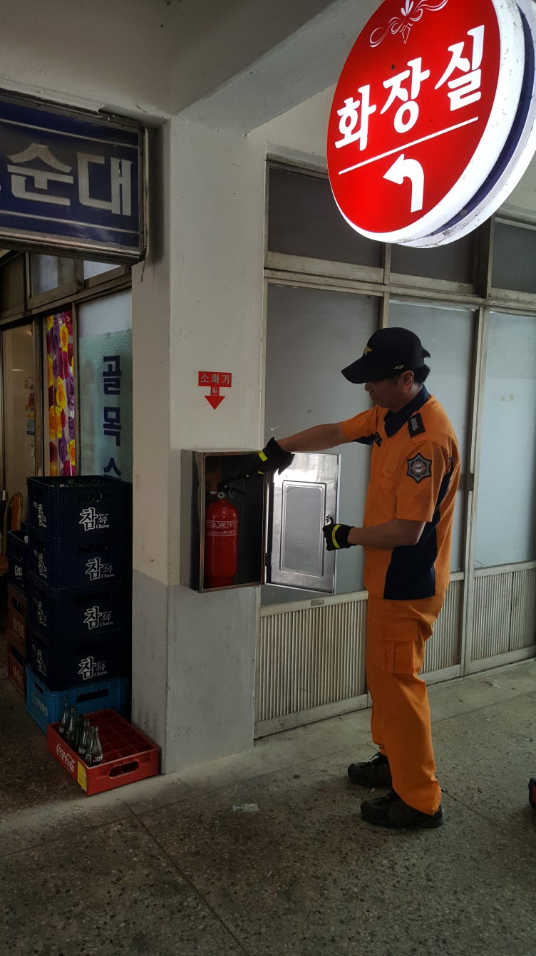 황금시장 등 관내에 설치한「보이는 소화기」역시 지역 전통시장 상인들과 이용객들의 화재초기 대응능력 강화 및 신속한 대처로 대형 피해를 예방하고자 추진하였으며, 유사시 사용하는데 무리가 없도록 소화기 사용 및 관리법 교육도 같이 실시하였다.