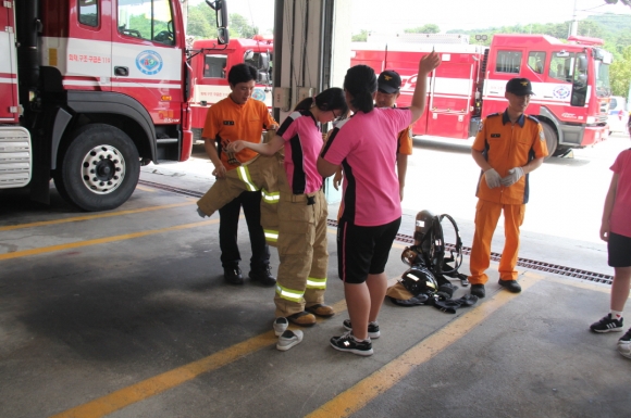 이날 체험은 화재, 구조 및 구급 3개 분야로 실시되었으며, 소방차 방수를 통한 화재진압, 구조장비 체험 실습 및 심폐소생술 실습교육을 통한 위급한 상황에 대처하는 능력을 키우는 기회를 가졌다.