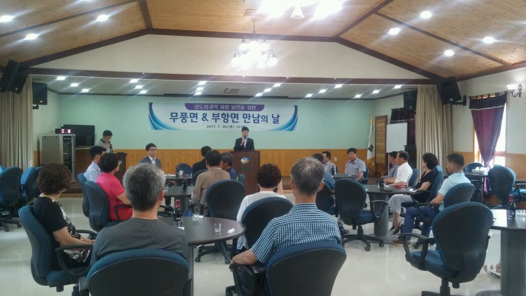 | 삼도봉을 매개로 인접하여 인적 왕래가 활발한 김천시 부항면(면장 안재석)과 전라북도 무주군 무풍면(면장 이상형) 만남의 날 행사가 지난 7월 20일(금) 12시 무풍면 철목리 소재 무풍승지마을에서 개최되었다.