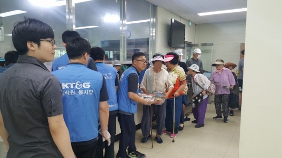 | 어르신 무료급식사업 “사랑의 밥상”은 김천부곡사회복지관 주관으로 무료급식소 야고버의 집에서 어르신들이 무더운 여름을 이겨내는 보양식으로 삼계탕 400인분을 준비하여 대접하였으며, KT&G 김천공장 직원들은 오신 분들이 편안하게 식사를 하실 수 있도록 음식을 자리에 가져다 주는 등 배식 봉사활동을 실시하였다. 발달장애청소년 수영교실은 사)경상북도장애인부모회 김천시지부 주관으로 발달장애청소년 20명을 대상으로 김천실내수영장에서 7월부터 올해 12월까지 매주 수요일 운영하게 되며, 이날부터 수영강사의 지도에 따라 수영을 배우며 평소 운동량이 많지 않은 청소년들의 신체적 건강을 증진시키고, 정서함양에도 좋은 소중한 기회가 될 것이라고 기대된다. KT&G 김천공장은 지역의 저소득층, 소외계층을 대상으로 사회공헌활동을 활발히 하고 있으며, 올해 하반기에도 결식아동급식비 지원, 사랑의 연탄전달, 김장나누기 등 다양한 사업들을 기획하여 추진할 예정이다.
