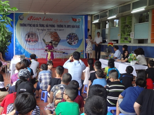 국제교류 협약식에는 지례초 정진표 교장과 베트남 하이바증 스쿨 Hoang Thi Binh 이사장이 서명을 하고, 한국-베트남 학생들의 음악교류 및 베트남 학교 내의 각종 동물관찰, 물고기 잡기, 흙놀이, 놀이시설을 이용한 챌린지 활동의 학생 교류를 실시하였다. 그리고 지례초 학생들은 부채를 선물로 주었고, 베트남 하이바증 스쿨 학생들은 베트남 국기 열쇠고리를 만들어 선물하였다.