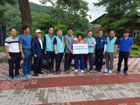 | 교통안전공단 오영태 이사장을 비롯한 20여명의 직원들은 7월 25일(화) 오전 10시 부터 1사1촌 자매결연을 한 김천시 증산면 부항리를 찾아 일손이 부족한 농가들의 시름을 덜고자 농촌일손돕기를 실시했다.