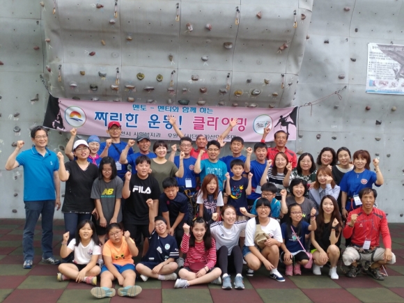 | 김천시(시장 박보생) 드림스타트에서는 지난 7월 27일 스포츠타운내 인공암벽장에서 멘토·멘티 20명이 함께하는 암벽타기 훈련을 하였다. 사단법인 산악구조대 동아리팀 후원으로 실시한 이번 체험은 익스트림 스포츠로 인기있는 클라이밍 수업이었다. 인공 시설물인 암벽을 이용해 즐기는 스포츠로 거대한 구조물에 인공홀더를 설치해 손과 발을 이용해 오르는 스포츠다.