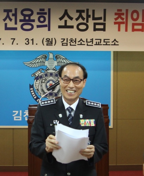 |  | | | ⓒ 김천내일신문 | | 제57대 전용희(57) 김천소년교도소장이 지난7월31일 취임했다. 경북 성주 출신으로 방송통신대학교 법학과를 졸업하고 1986년 9급 공채로 공직에 입문했다. 대구교도소 분류심사과장, 대구교도소 보안과장을 역임하고 김천으로 부임했다.지냈다. 직원 상하간 신망이 두텁고 깔끔한 업무처리가 돋보인다는 평가를 받고 있다. 신임 전 소장은 취임사에서 "기본과 원칙에 충실하고 수용자 교정교화로 국민 행복 희망교정을 만들어 갈 수 있도록 최선을 다하겠다"고 말하고. "청렴한 공직문화 조성과 엄정한 수용질서 확립, 전 직원이 주인의식을 갖고 각자의 업무에 전문가가 돼 줄 것"을 당부했다. |