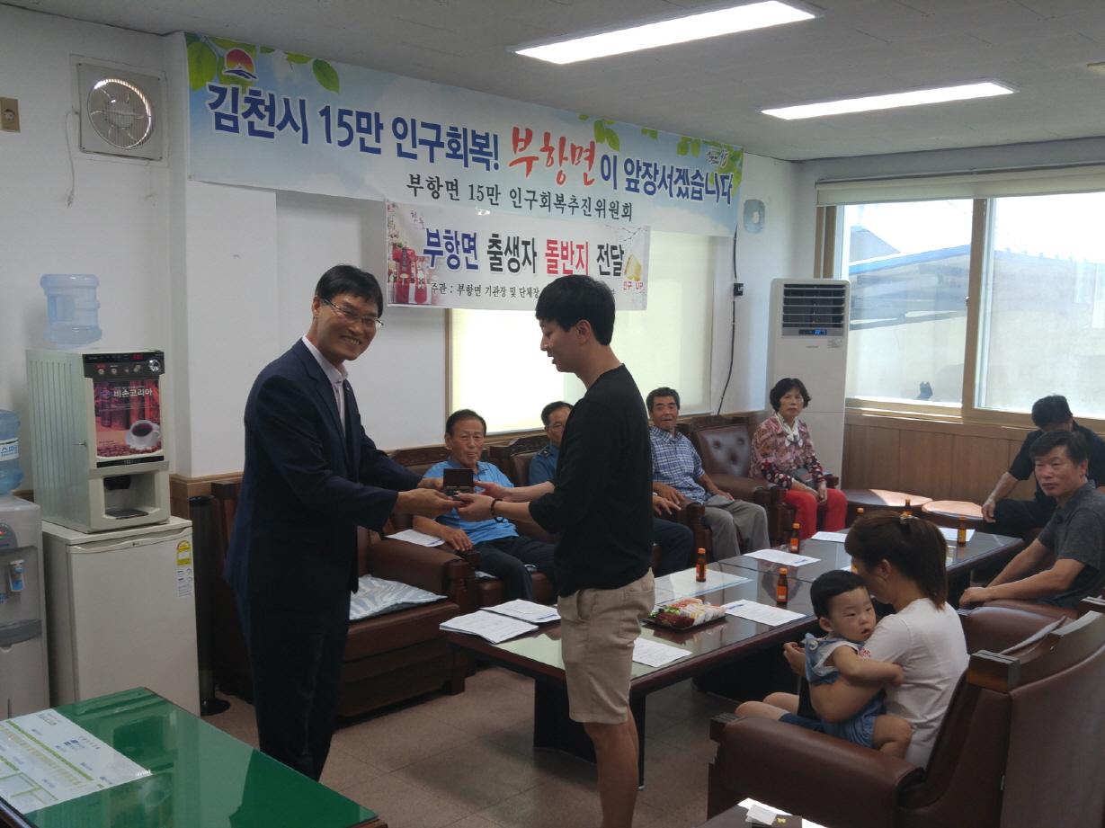 또한 초고령화 사회로 접어들어 인구가 점차 줄어들고 있는 어려운 상황에서 인구절벽에 대한 주민들의 경각심을 일깨우고 김천시 최우선 과제인 『15만 인구회복운동』에 대한 관심과 참여를 유도하기 위해 부항면이 추진하고 있는 인구증가시책 중의 하나다.