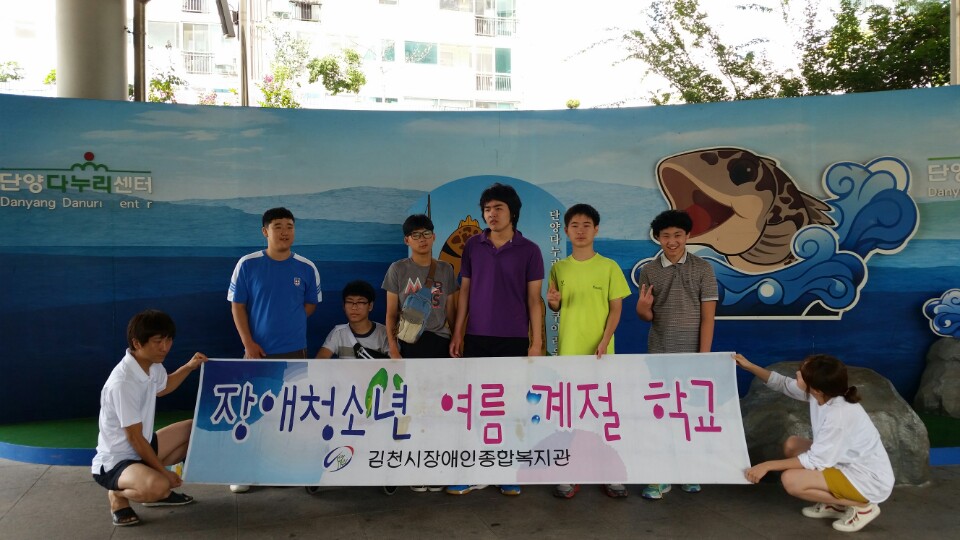 | 김천시장애인종합복지관(관장 박선하) 장애청소년 7명은 8월 10일(목)과 11일(금) 양일간 충북 단양군 일대로 극기캠프 및 체험학습을 진행했다. 일상을 벗어난 야외 활동을 통해 장애청소년들에게 대인관계․사회관계․인간관계 개선 및 교육의 기회를 제공하고, 도전정신 함양과 자립심 향상을 위해 캠프를 실시하게 되었다.