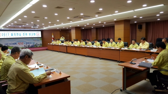 | 김천시(시장 박보생)는 국가비상대비태세확립을 위한“2017 을지연습”을 완벽하게 추진하기 위해 16일 시청 회의실(2층)에서 준비보고회를 개최했다.