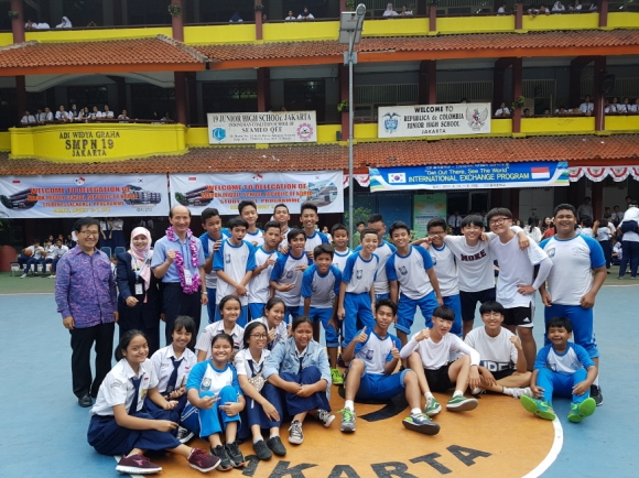 이에 2017학년도 교육부 주최 다문화대상국가 국제교류사업에 참여하게 되었다. 이번 인도네시아 SMPN19 중학교 방문에는 학생 25명과 이보환 교장 선생님을 비롯하여 인솔교사 2명 등 총 28명이 참가하였으며, SMPN19와 자매학교 결연 체결, 양국 문화 교류, 홈스테이를 통한 현지 문화 체험 등 활동이 6일 간에 걸쳐 이루어졌다.