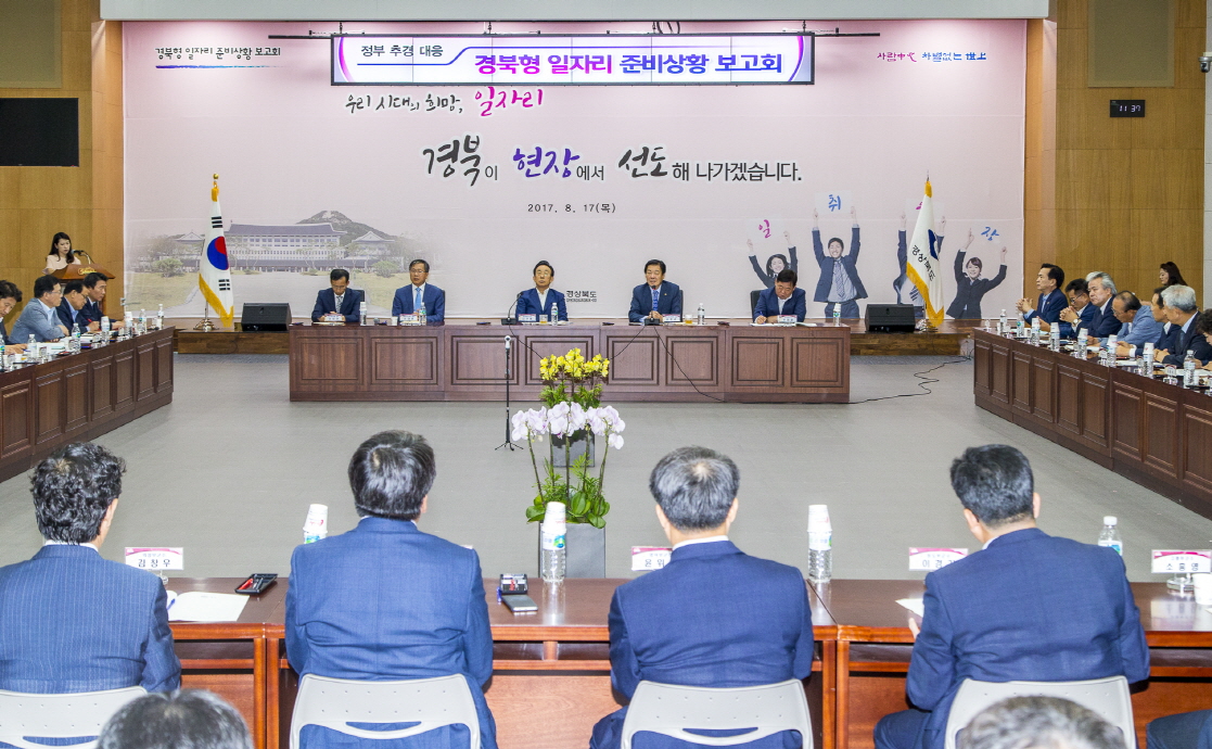 | 김응규 경상북도의회 의장은 8월 17일(목) 도청 화백당에서 경북형 일자리 추경 준비상황 보고회에 참석하여 지난 정부 일자리 추경확정(7.22)에 따른 道차원의 대응방안을 논의했다 .