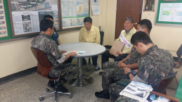 이번에는 특히 을지훈련기간을 맞이하여 어모면 기관장(김태덕 파출소장, 김성기 어모면대장)과 함께 남산리에 소재한 어모대대를 방문 유 훈 대대장과 면담을 통해 김천시 전입시책 안내문을 드리면서 김천시 미전입 간부나 병사들이 김천시로 전입하여 주실 것을 간곡히 협조 요청하였다.