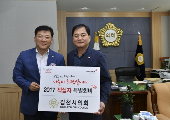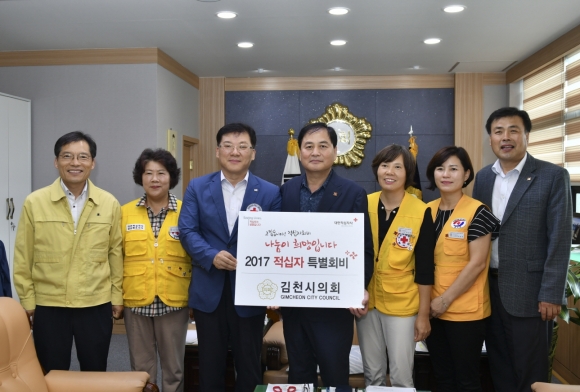 | 김천시의회 (의장 배낙호)는 지난 24일 오후 2시 의장실에서 대한적십자 경북지사에 적십자 특별회비를 전달하였다.