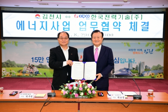 | 김천시(시장 박보생)는 김천혁신도시 이주기관인 한국전력기술(주)와 에너지사업 업무협약서를 체결하고 신재생에너지개발에 본격적으로 나섰다.
