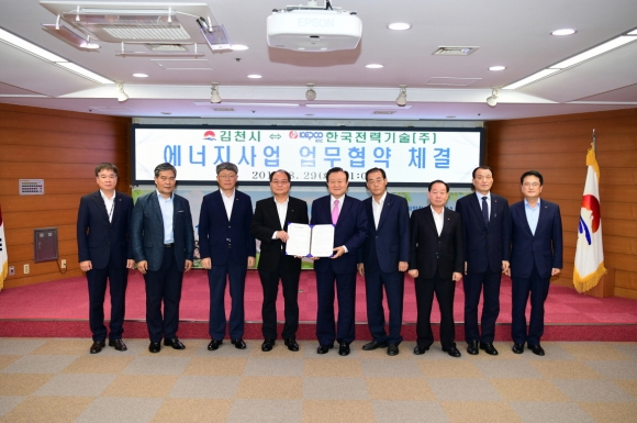 29일 김천시청에서 진행된 협약식에는 박보생 김천시장과 박구원 한국전력기술(주) 사장 등이 참석하여 사업추진을 위한 사업개발 정보공유, 기초계획수립 및 사업성검토, 인허가관련업무, 사업수행에 필요한 제반업무를 상호간 협의하여 추진할 계획이다.