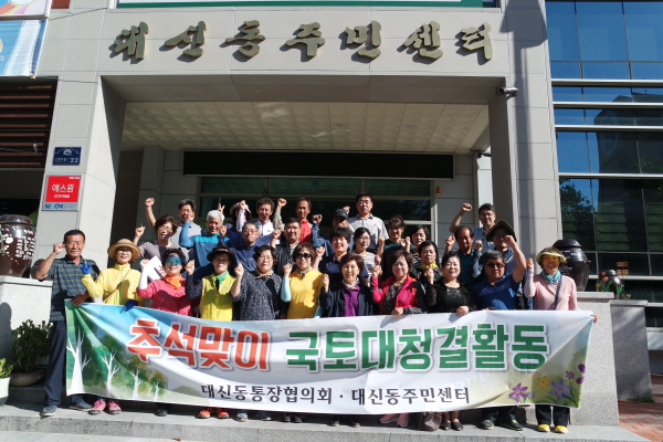 이날 활동에는 우리 고유의 명절 추석을 앞두고 대신동을 찾는 귀성객들 이 깨끗하고 쾌적한 명절을 보내고 갈 수 있도록 주택가, 원룸 주변에 어지럽게 널려져 있는 생활 쓰레기를 중점적으로 수거하였다. 한윤태 통장협의회장은 “국토대청결 봉사활동을 통해 통장 상호간에는 화합을 도모하고 대신동 주민들에게는 깨끗한 생활주변 환경을 제공할 수 있어 기쁘다“고 했다.
