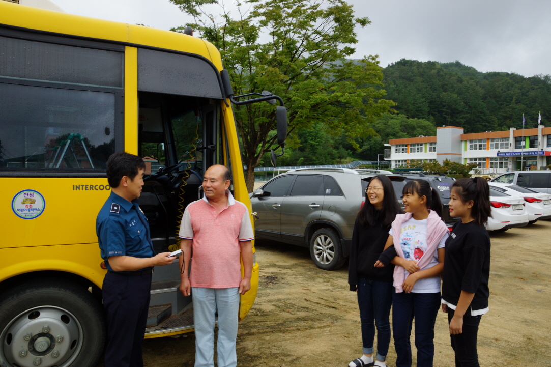 | 김천경찰서(서장 김영수)에서는 9월 6일(수) 08:00, 15:00경 신일초등학교, 조마초등학교 등을 방문하여 스쿨버스 운전기사 음주운전 감지, 교통지도 등 아이들의 안전한 학교 환경 조성을 위한 활동을 펼쳤다.