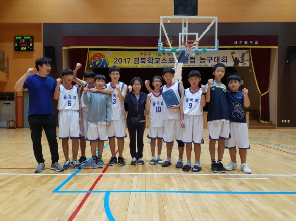 |  | | | ⓒ 김천내일신문 | | 율곡초등학교(교장 이삼영)은 지난 9월2일~3일 상주 상산초등학교에서 열린 2017 경북 학교스포츠클럽 농구대회 남초부 대회에서 첫 출전하여 준우승을 이루는 쾌거를 이루었다. 율곡초등학교 농구부 ‘FIVE’는 올해 3월 인원을 모집하여 창단한지 6개월 밖에 안 된 신생팀이었으나 아침 시간, 방과 후 시간 가리지 않고 열심히 훈련한 끝에 좋은 성적을 거둘 수 있었다.