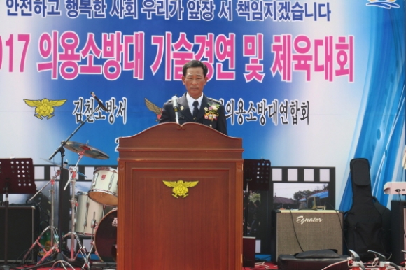 |  | | | ⓒ 김천내일신문 | | 김천소방서 의용소방대 연합회(회장 위상복)는 9월8일 KT&G김천공장 운동장에서 내빈과 읍면동 의용소방대원들이 참석한가운데 2017의용소방대 기술경연대회및 체육대회가 성황리에 개최됐다.