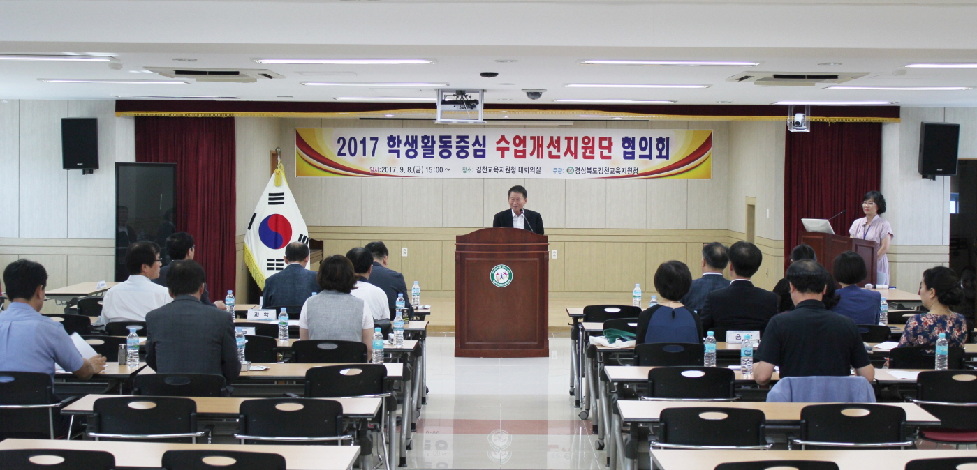 | 경상북도김천교육지원청(교육장 신정숙)은 9월 8일 경상북도 중․고등학교 교장, 교감, 수석교사, 전문직 등 24명의 김천수업개선지원단이 참석한 가운데, 2017학년도 학생활동중심 수업개선지원단 협의회를 실시했다.