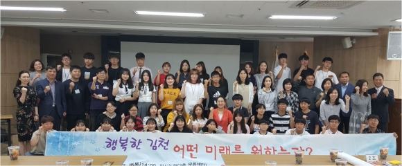 「김천시 학부모·청소년 토론회」는 김천시가 주최하고 김천시지역사회보장협의체 여성·청소년분과에서 주관 하였으며, 학부모와 청소년이 한자리에 모여 미래에 대한 이야기로 공감대를 형성하고 지역사회와 상생과 소통을 통해 안전하고 행복한 지역사회를 만들기 위한 방안을 모색하기 위하여 실시하게 되었다. 토론회는 ‘비영리 컨설팅 웰펌’ 김미경 강사의 진행으로 ‘행복한 김천 어떤 미래를 원하는가’ 라는 주제를 가지고 그룹으로 진행 되었다.