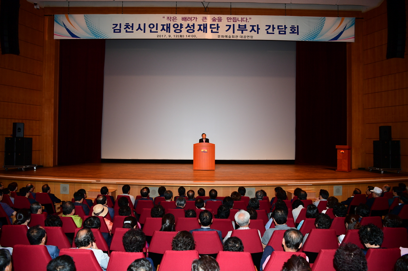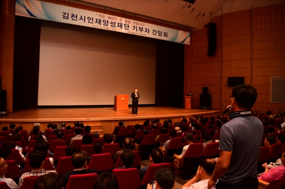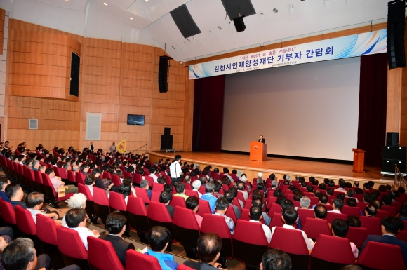 | 김천시인재양성재단(이사장 박보생)에서는 지난 9월 12일 기금조성 목표액 200억 조기 달성을 앞두고 김천시인재양성재단 기부자 간담회를 개최하였다.