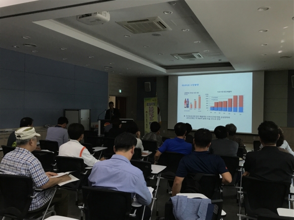 | 김천시(시장 박보생)에서는 지역 농산물을 활용하여 6차산업을 활성화하고 농업의 부가가치를 향상시키기 위하여 개설한 김천시 농업인대학 천연발효식초과정이 20주의 긴 교육과정을 마치고, 9월12일(화) 위더스위즈덤센터 정일윤 대표의 식초시장 전망과 세계식초에 대한 특강 및 교육 종합평가를 진행하였다.