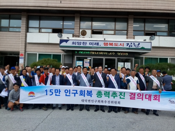 | 김천시 대덕면(면장 이상재)은 지난 12일 대덕면사무소 회의실에서 15만 인구회복 총력 추진 결의대회를 개최했다.