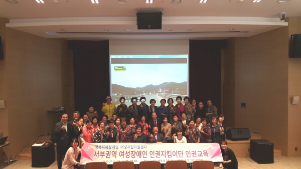 ( |  | | | ⓒ 김천내일신문 | | 사)경북지체장애인협회 김천시지회(회장 박선하)는 9월 14일 율곡동 혁신도시에 있는 녹색미래과학관 2층 세미나실에서 서부권역 여성인권지킴이단 인권교육을 실시하였다. 이날 교육에는 박선하 지회장, 권순종 구미시지회장, 경북 서부권역 김천, 구미, 상주, 문경, 예천, 5개 시군지회 여성장애인 인권지킴이단원 50여명이 참석하여 진행되었다. 이날 강사로 초청된 최성 경북장애우권익연구소 대표의 ‘장애인지와 인권감수성 향상을 위한 인문학적 대화’ 라는 주제로 장애인의 인권과 인권침해 사안의 실례 및 장애인차별금지법의 세부적인 사항에 관한 강의를 진행했으며, 이번 교육을 통해 장애인도 사회의 한 구성원으로서 화합할 수 있고 정당한 권리를 가지는 주체적 존재임을 인식시키는 유익한 교육의 장을 마련하면서 서부권역 여성장애인 인권지킴이단의 인권교육을 마감했다.