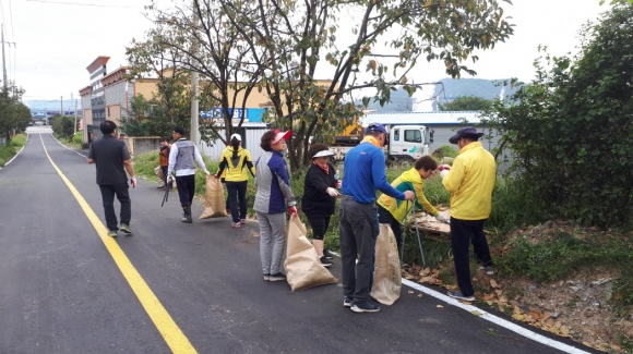 | 김천시 대신동 자연보호협의회(회장 전종만)는 우리 민족 고유의 명절인 추석을 맞이하여, 지난 16일 오전 6시부터 그린빌~ 속구미~삼애원입구~아홉사리 일원 등 10km 구간에 연도변 환경정비에 나섰다.