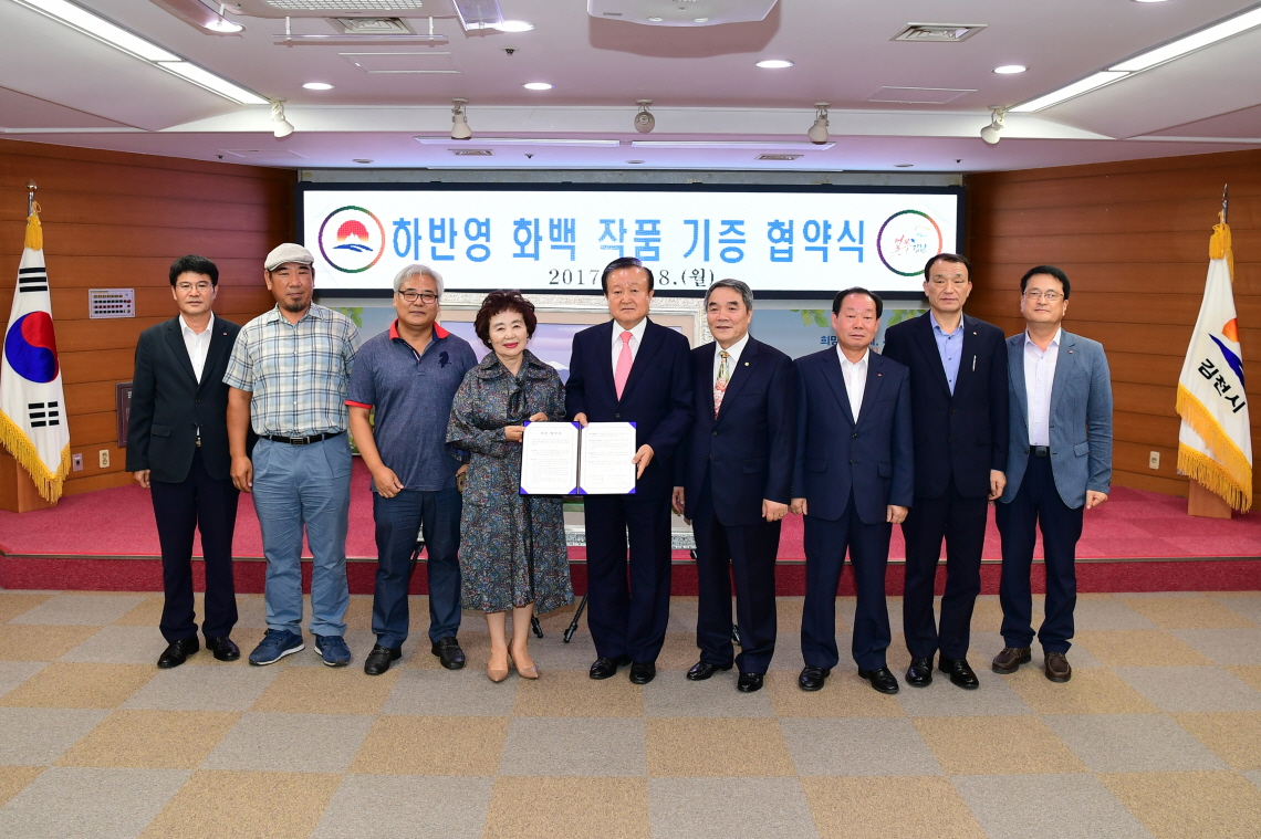협약식에 참석한 박보생 김천시장은 이번 작품 기증과 관련하여“동양의 피카소라 불리우는 세계적인 작가인 하반영 화백의 작품을 고향인 김천에 기증하여 주신데 대하여 매우 기쁘고, 감사하게 생각하며 기증해 주신 작품은 모든 사람들에게 많은 예술적 감명을 주며 김천시 문화예술 발전에 크게 기여하게 될 것”이라고 전했다.