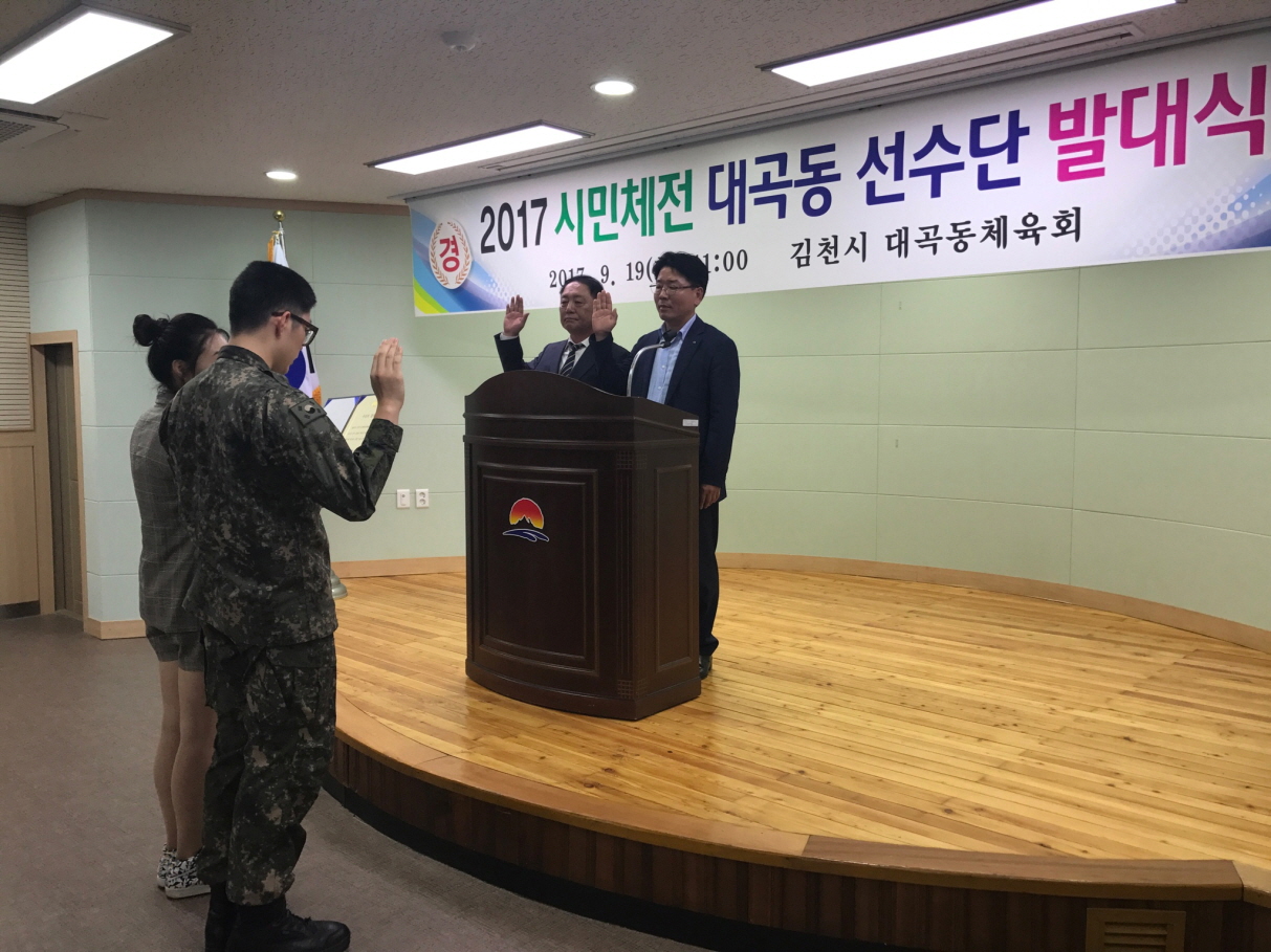 | 대곡동 체육회(회장 김종철)는 9월19일(화) 오전11시에 대곡동주민센터 2층 회의실에서 2017 시민체전 대곡동 선수단 발대식을 개최하였다.